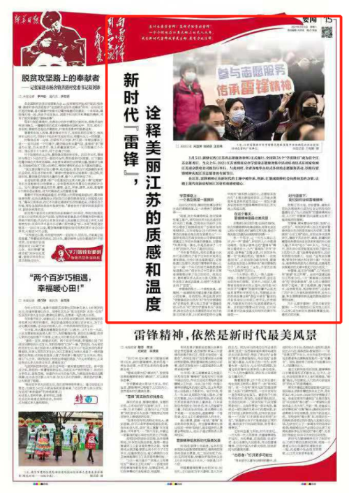 在江蘇,雷鋒精神正在新時代的土壤中被傳承、創新,匯聚成助推社會向善向美的力量,讓踏上現代化新征程的江蘇更有質感更暖心。