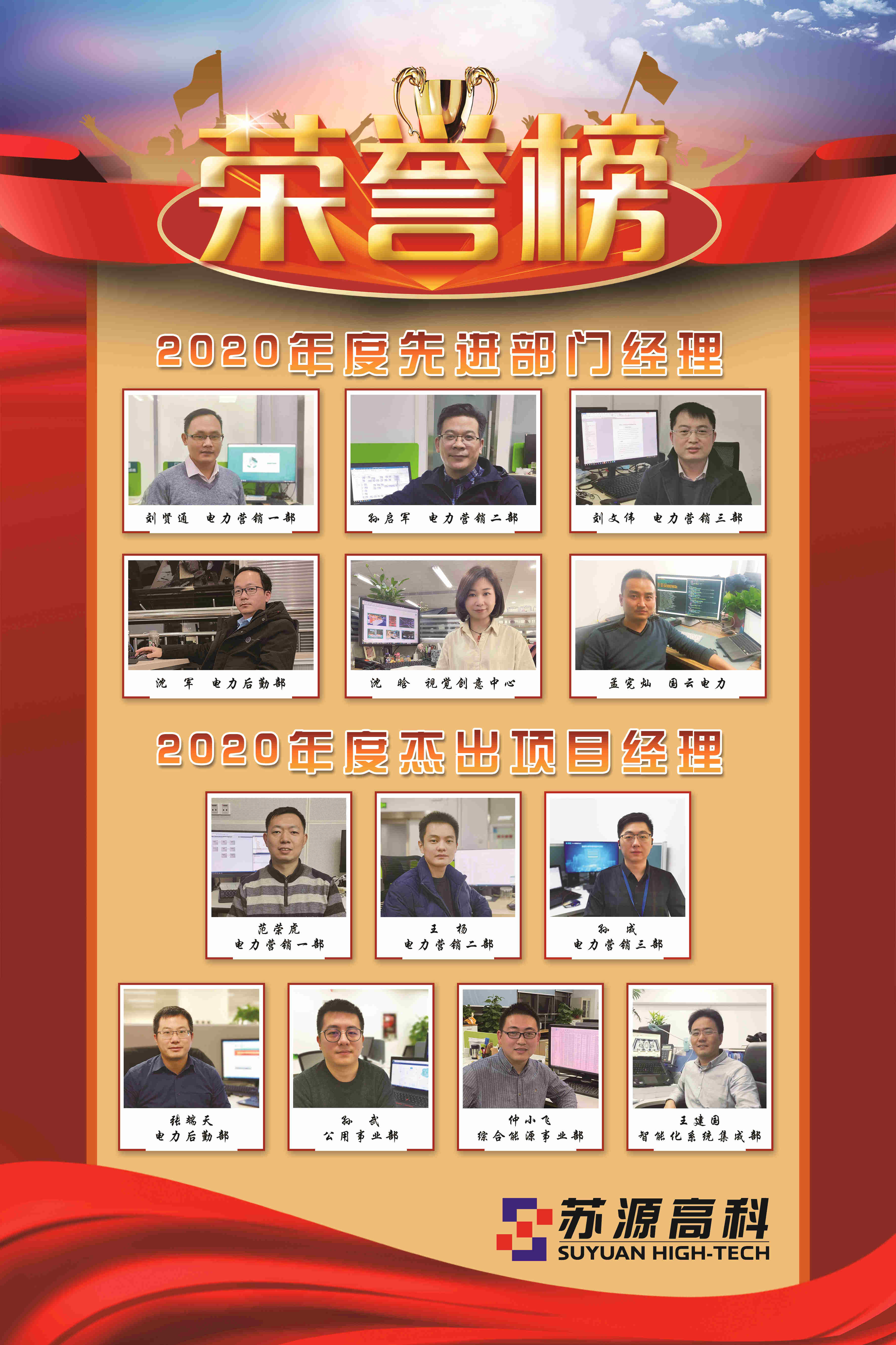 為表彰先進,樹立榜樣,充分發揮先進典型的示范引領作用,進一步激發廣大干部職工干事創業熱情,推動公司發展再上新臺階,公司決定:授予劉賢通等6名同志“2020年度蘇源高科先進部門經理”稱號;授予張端天等7名同志“2020年度蘇源高科杰出項目經理”稱號;授予陳玉雯等16名同志“2020年度蘇源高科優秀員工”稱號。